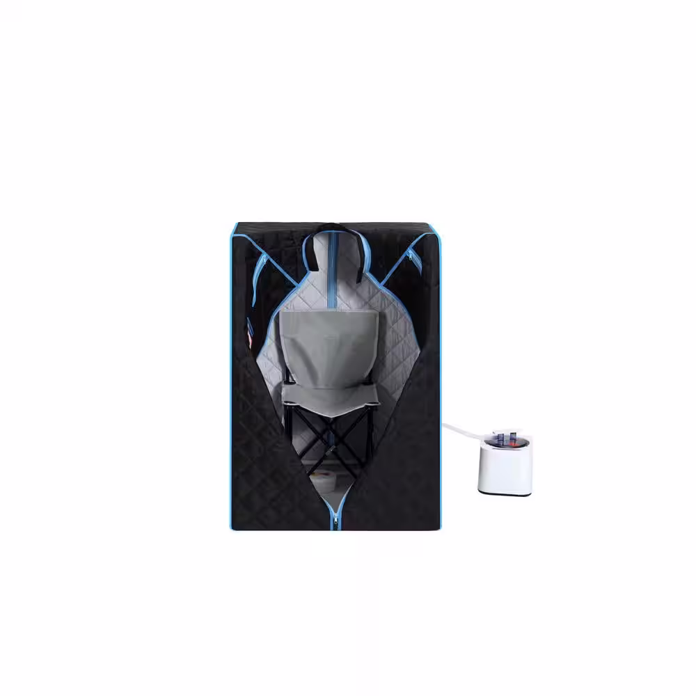 Tidoin 1-Person Black Steam Sauna with Sauna Tent Unit, Remote Controller, Steam Generator, Mat Board and Foldable Chair