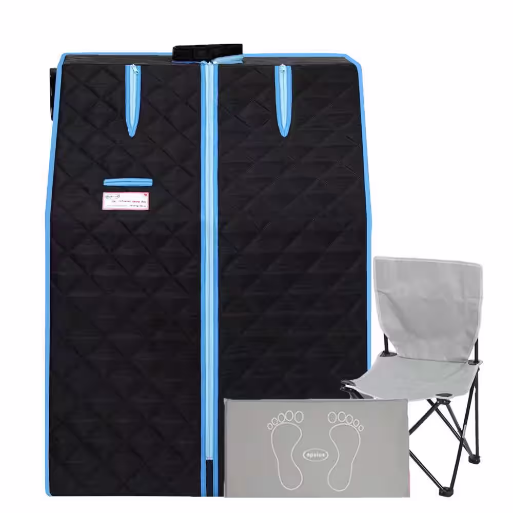 Tidoin 1-Person Gray Infrared Sauna with Sauna Tent, Remote Controller, Steam Generator, Mat Board and Foldable Chair