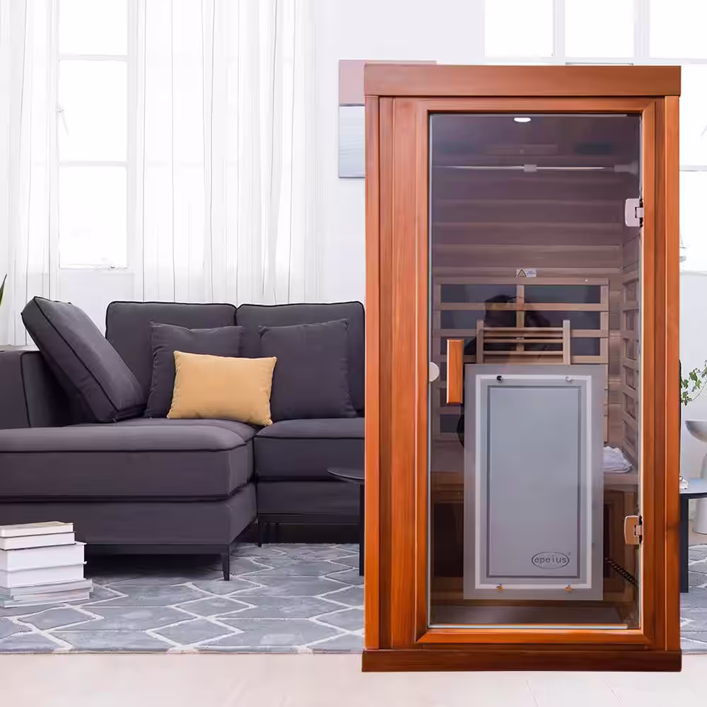None Tita 1-Person Far Infrared Sauna with 8-Heaters, LCD Display, Bluetooth Audio, LED Lighting and Vent Include