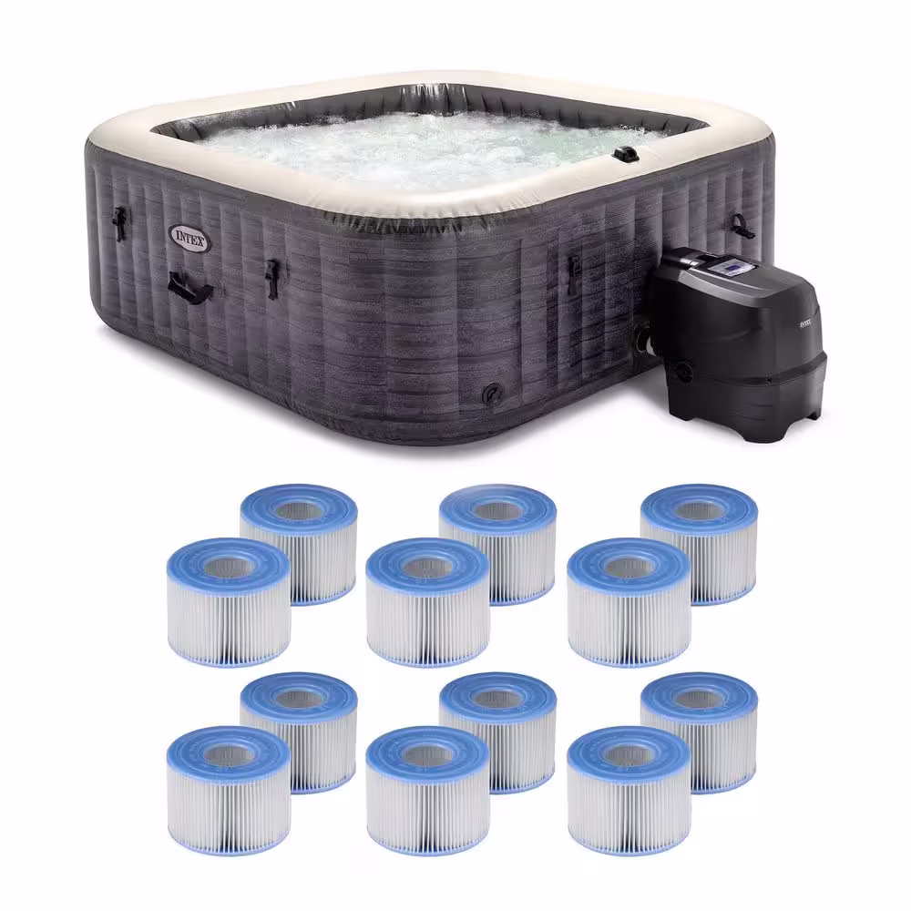 None PureSpa Plus 4-Person Portable Inflatable Hot Tub Spa and Type S1 Filter Cartridges (12 Pack)