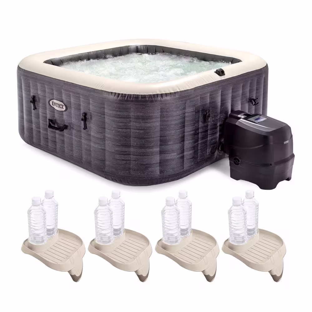 None PureSpa Plus 4-Person Inflatable Square Hot Tub Spa and Attachable Snack Tray, Tan (4 Pack)
