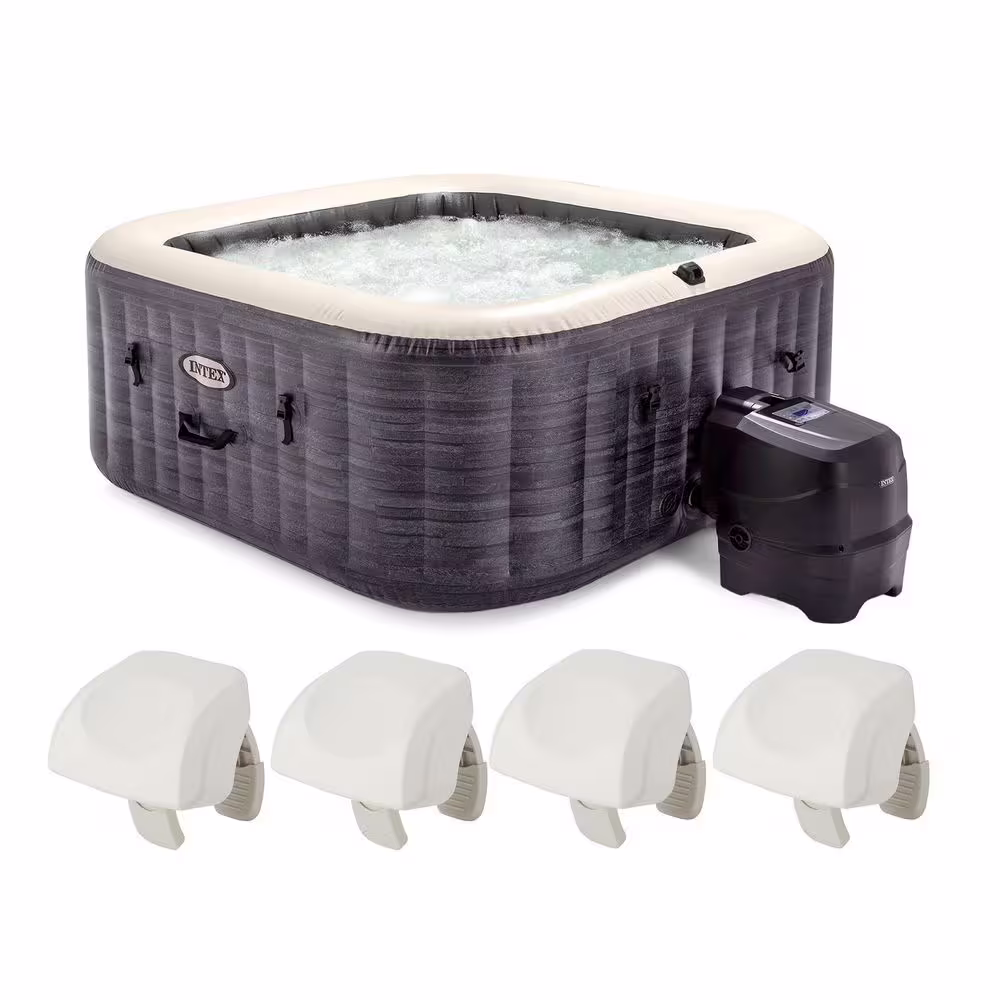 None PureSpa Plus 4-Person Inflatable Square Hot Tub and Cushioned Pillow, White (4 Pack)