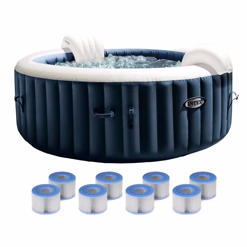 None PureSpa Plus 4-Person Inflatable Bubble Jet Hot Tub and Replacement Filters (8 Pack)