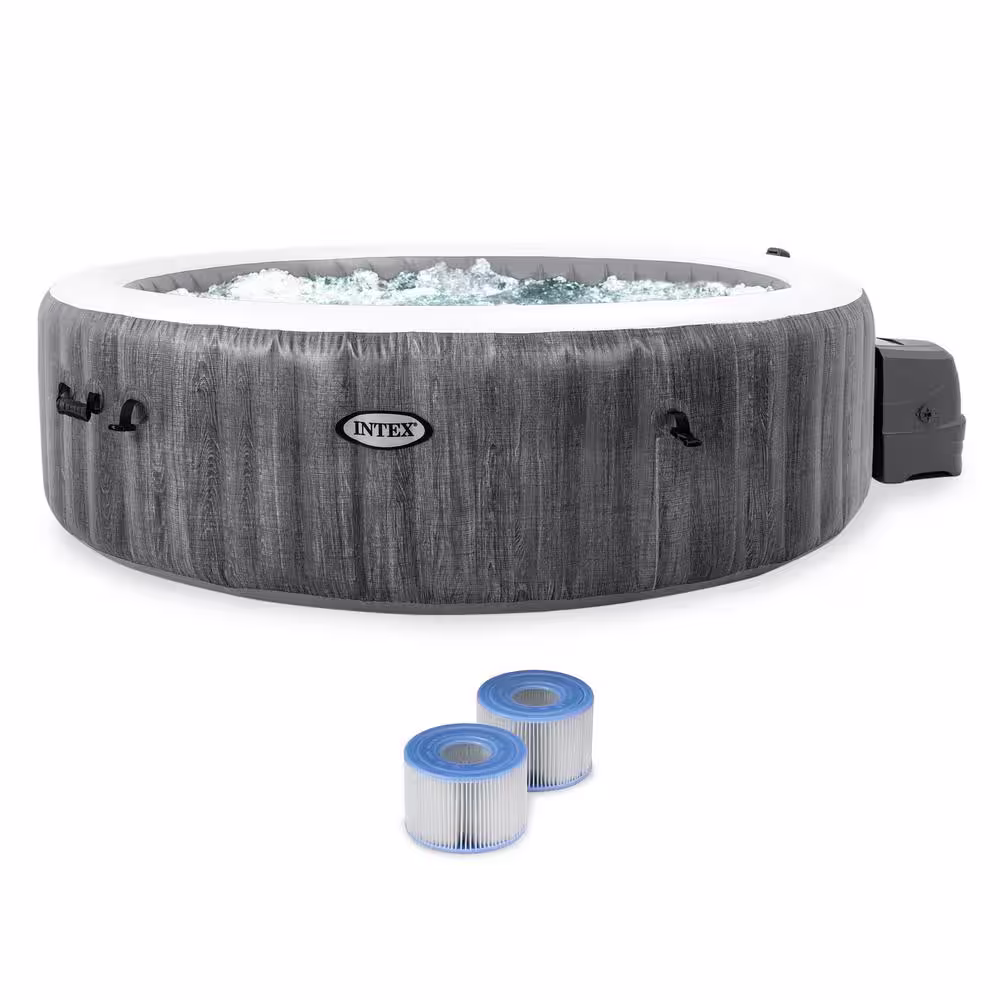 Intex PureSpa Plus Greywood Inflatable 6-Person Hot Tub Spa and Type S1 Filter Cartridges, 12 Pack