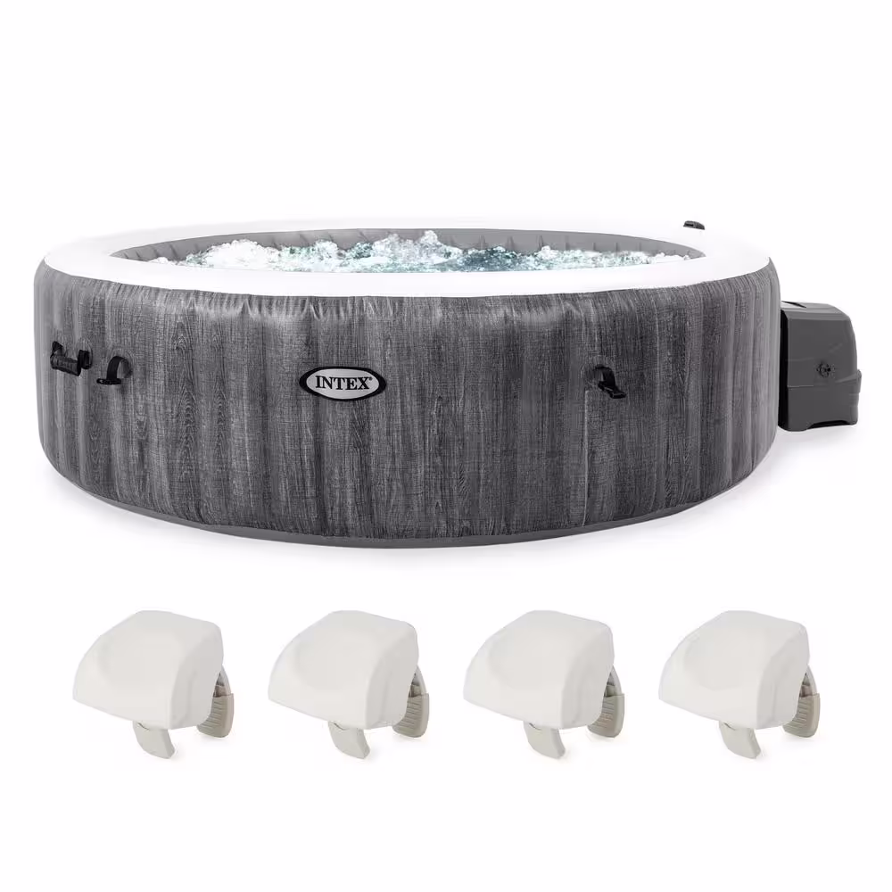 Intex PureSpa Plus Greywood Inflatable 6-Person Hot Tub Spa and Cushioned Foam Headrest (4 Pack)
