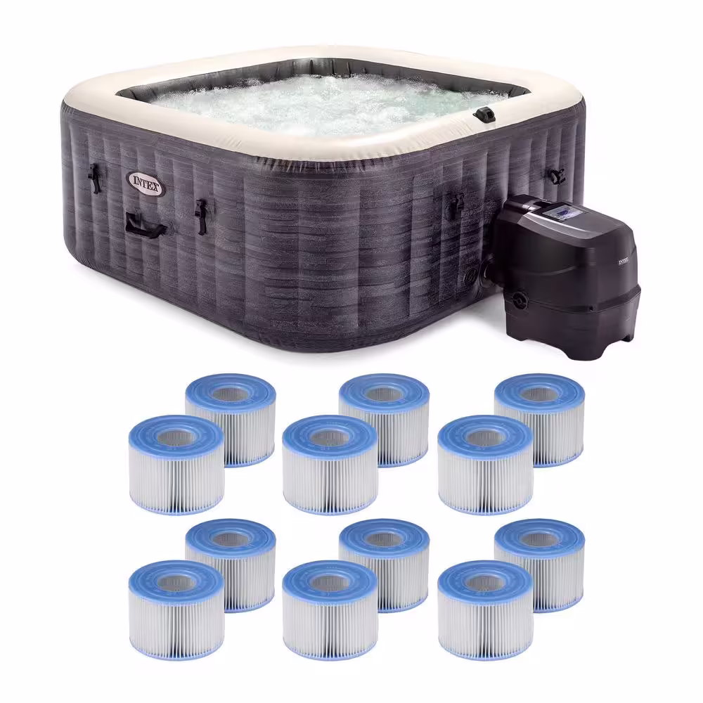 None PureSpa Plus 4-Person Inflatable Square Hot Tub Spa and Type S1 Filter Cartridges (12 Pack)
