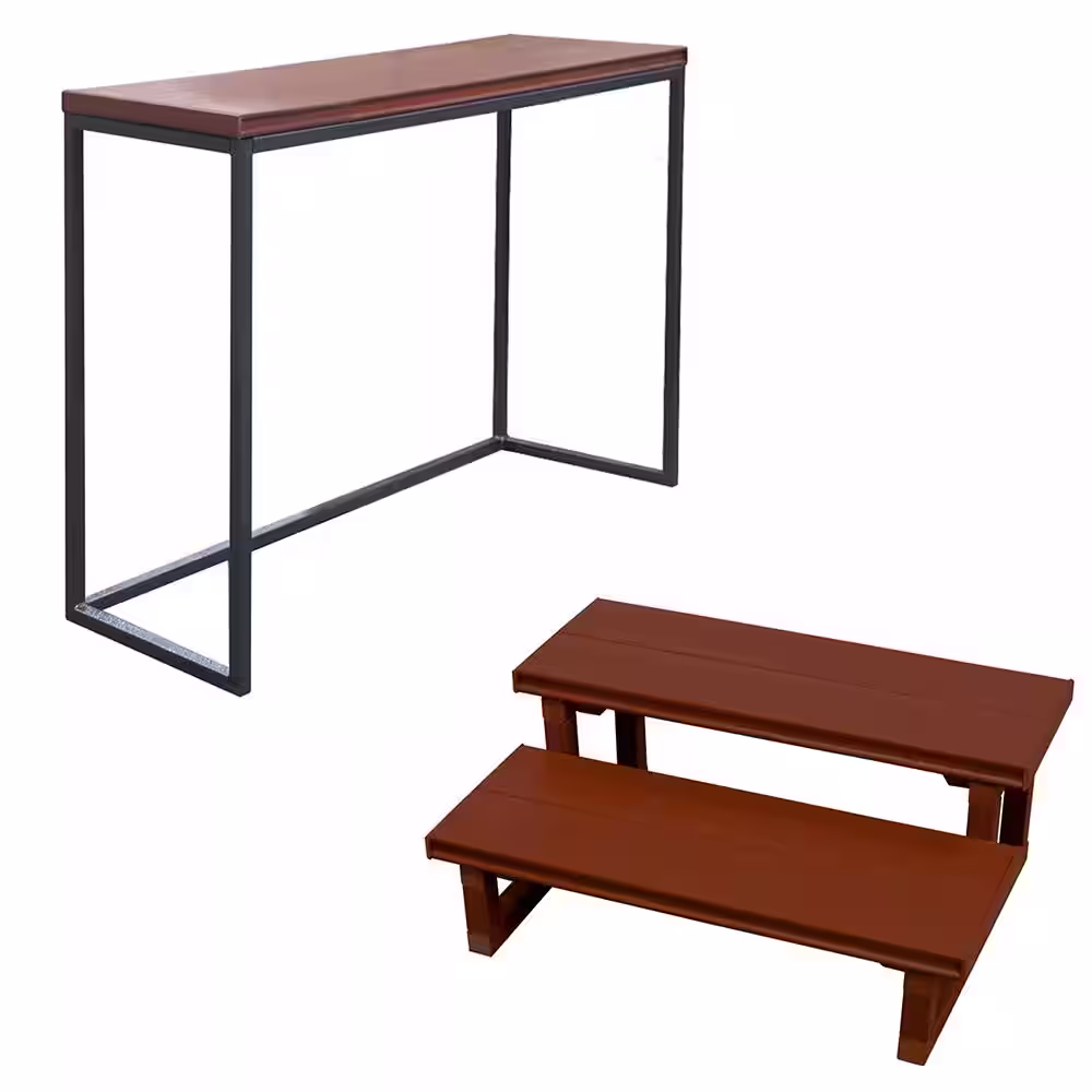 Cal Metro 16.5 in. x 36 in. x 35.5 in. Spa Bar and 2 Tier Spa Steps in Mahogany