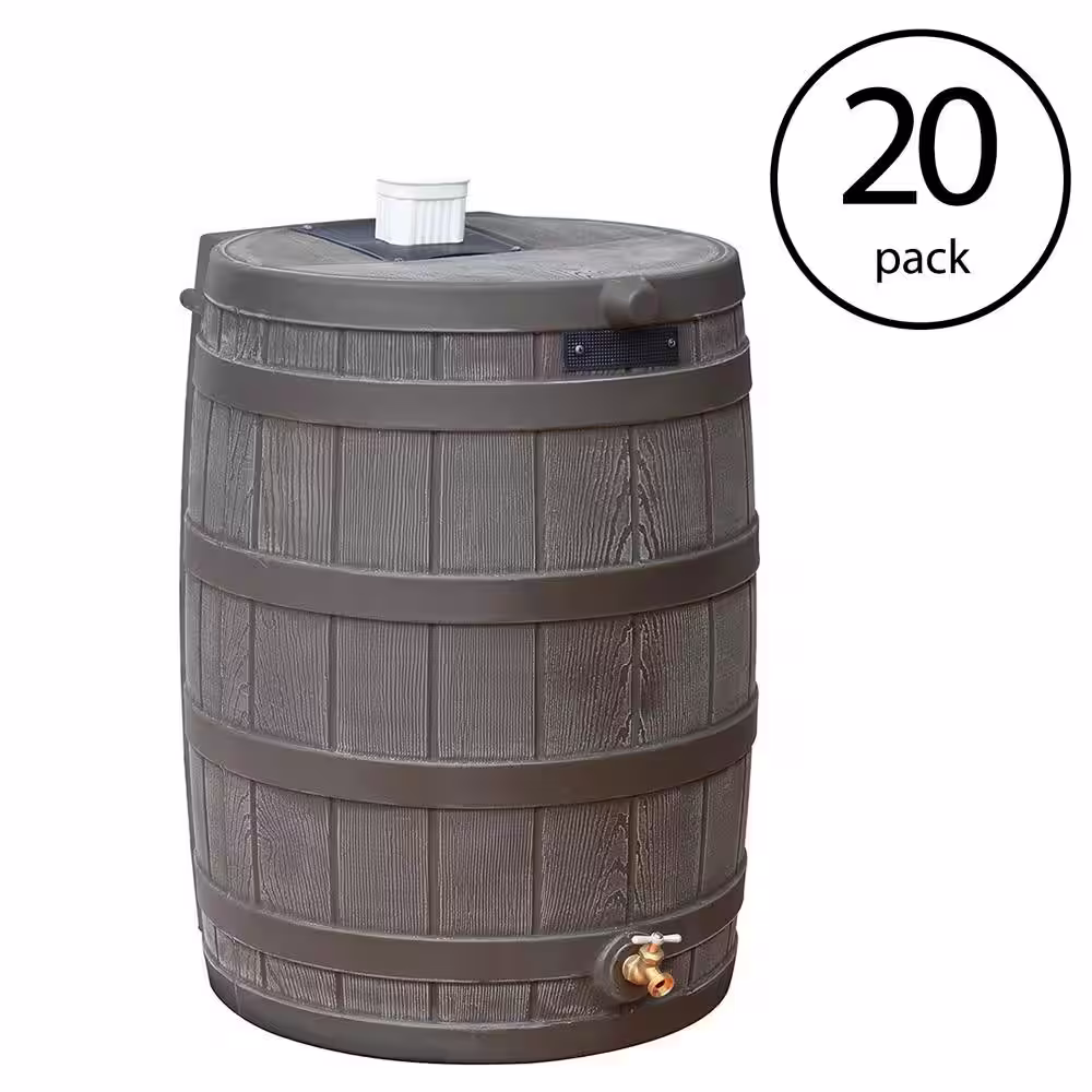 Good Ideas 50 Gal. Rain Wizard Plastic Rain Barrel Water, Oak (20-Pack)