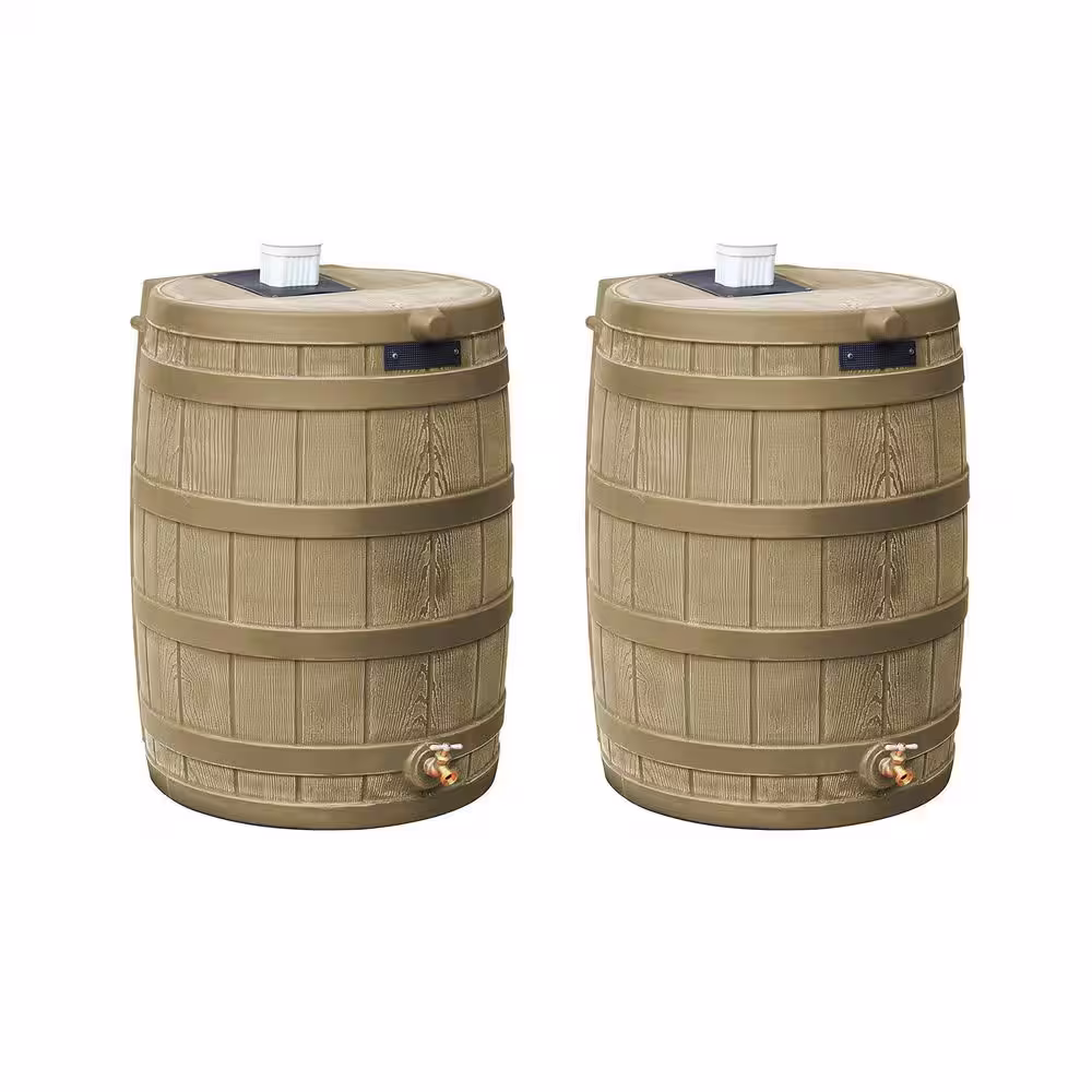Good Ideas Rain Wizard 50 Gallon Rain Barrel Water Collector, Khaki (2-Pack)