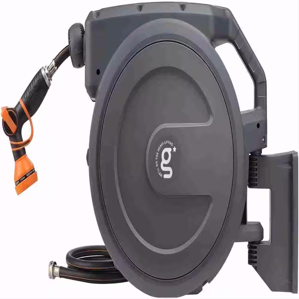 None 1/2 in. Dia x 100 ft. Wall Mounted Hose Reel with 9-Function Sprayer Nozzle