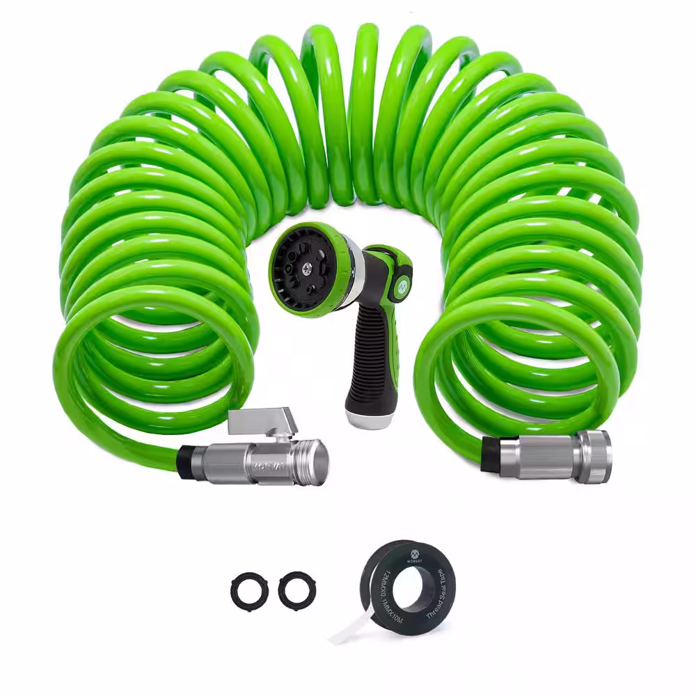 None 1/2 in. x 50 ft. Coil Garden Hose with ON/OFF Valve, Includes 10 Way Sprayer, Teflon Tape and Washers