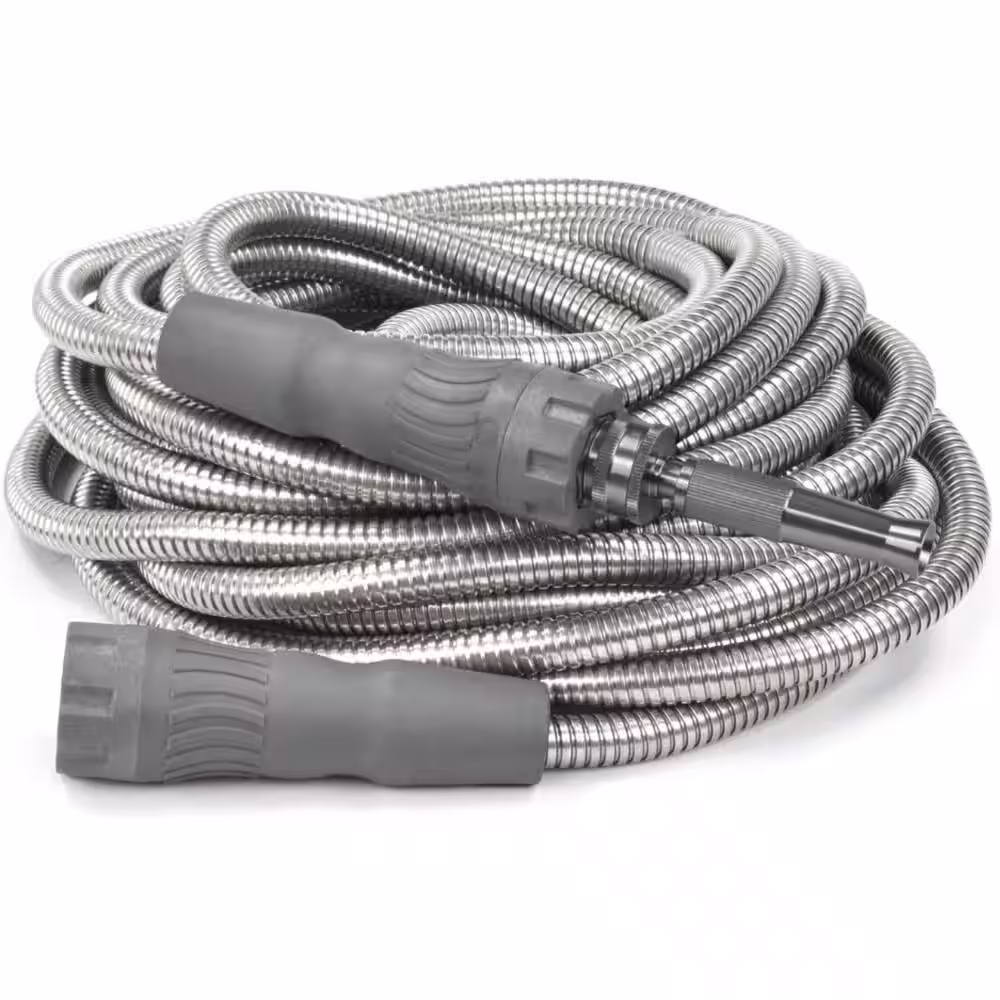 BERNINI FOUNTAINS Pro 5/8 in. Dia. x 50 ft. Length Light Kink Free Metal Hose - Grey