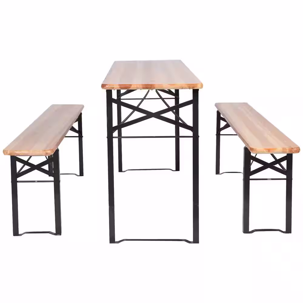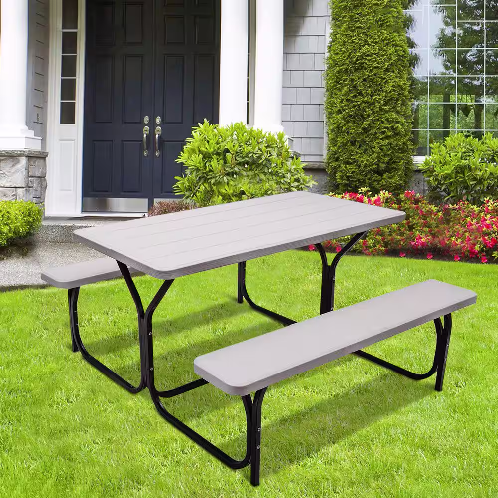 WELLFOR 3-Pieces Rectangular Metal and Wooden Picnic Table Set