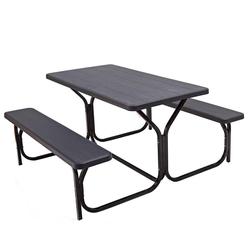 WELLFOR 3-Pieces Rectangular Metal Picnic Table Set