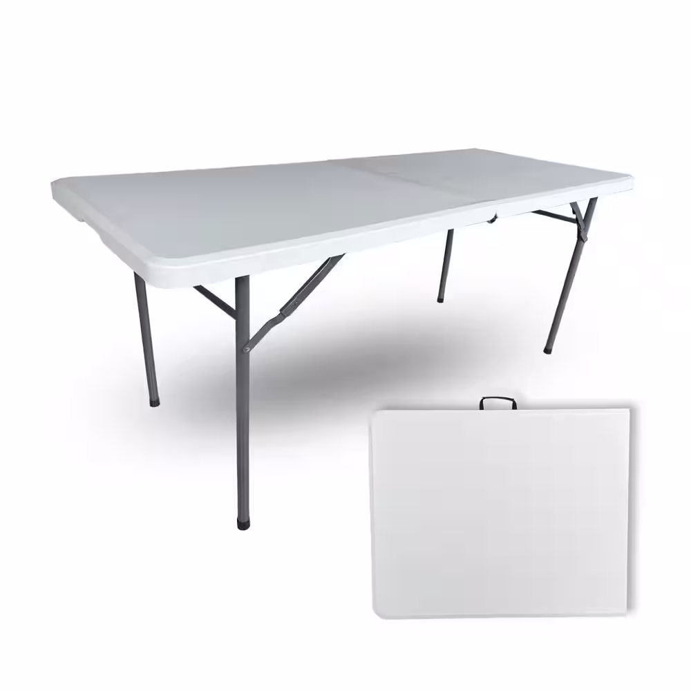None 6 ft. White HDPE Plastic Outdoor Picnic Table, Commercial Grade Folding Table