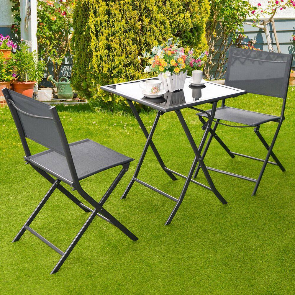SUNRINX 3 Pieces Bistro Set Garden Backyard Table Chairs Furniture Set