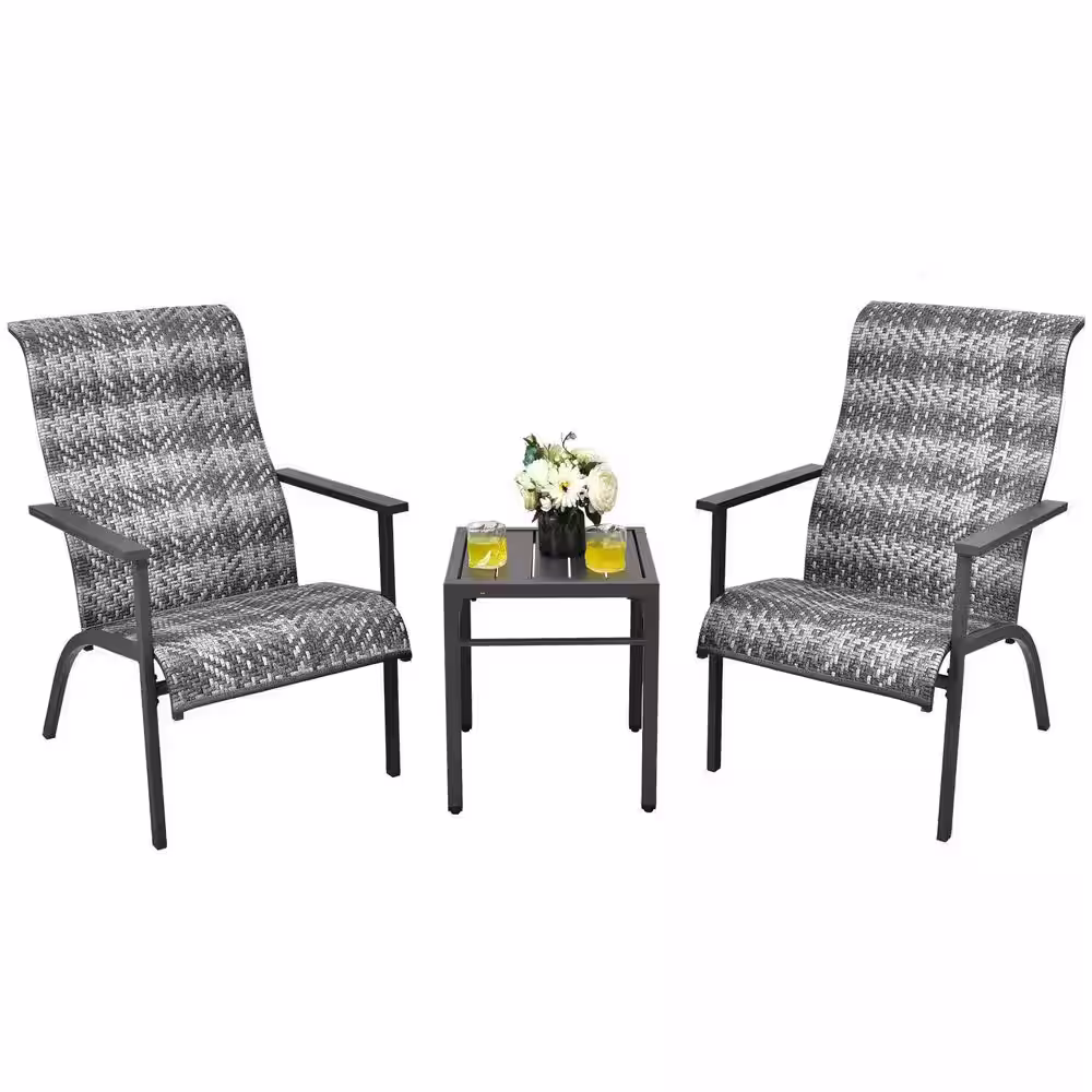 Alpulon Gray 3-Piece Wicker Outdoor Bistro Set with High Backrest and Armrest