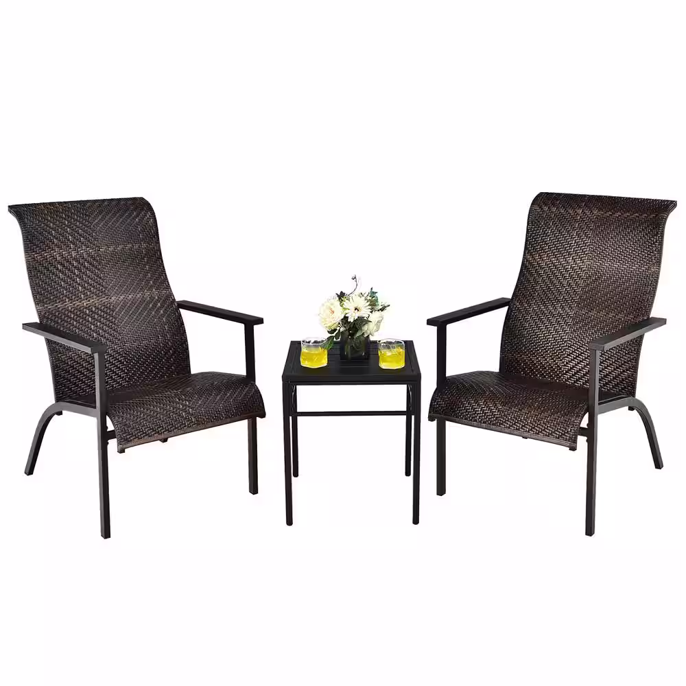 Costway 3 -Piece Patio Rattan Bistro Set High Backrest Armrest SideTable Mix Brown