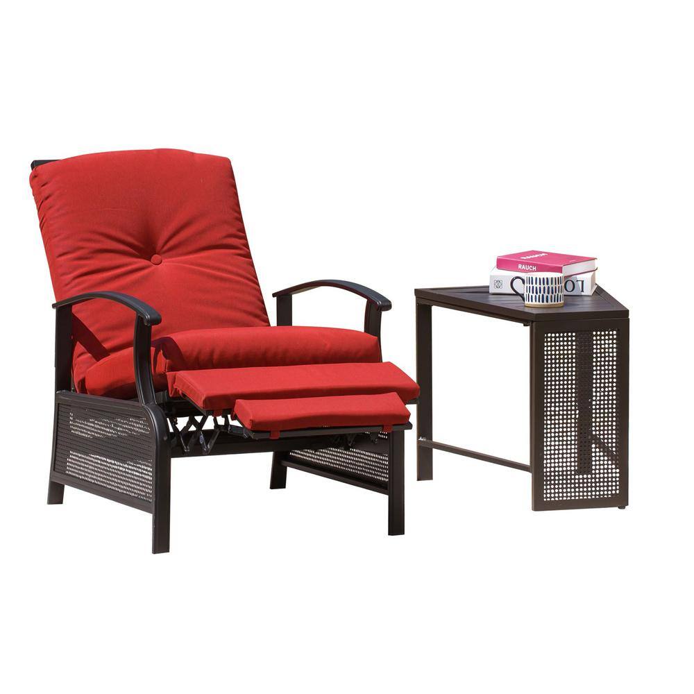 None Brown 2-Piece Metal Outdoor Bistro Recliner Set with Red Cushions