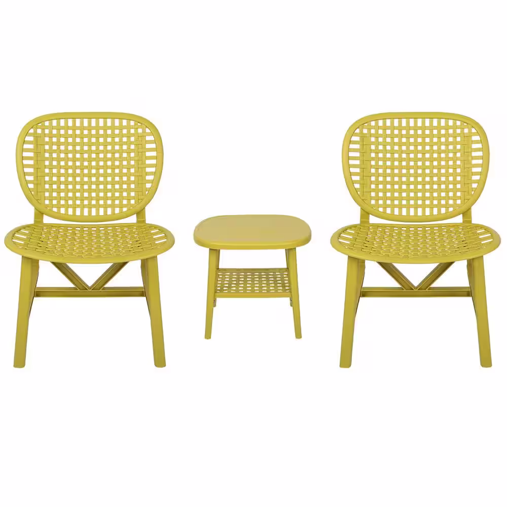 None Yellow 3-Pieces Patio Polypropylene Outdoor Bistro Set, All Weather, Table with Open Shelf and Lounge Chair