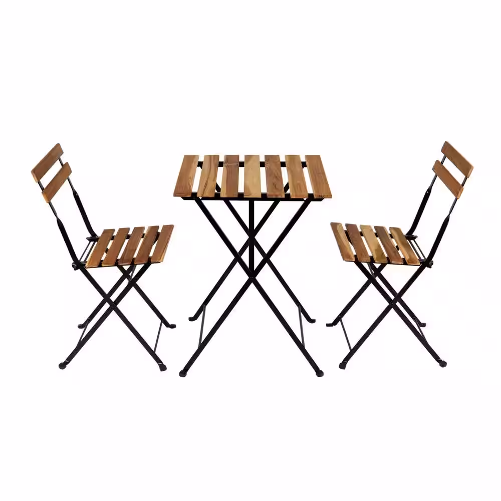 None 3-Piece Solid Teak Wood Outdoor Bistro Set with Navy Cushions