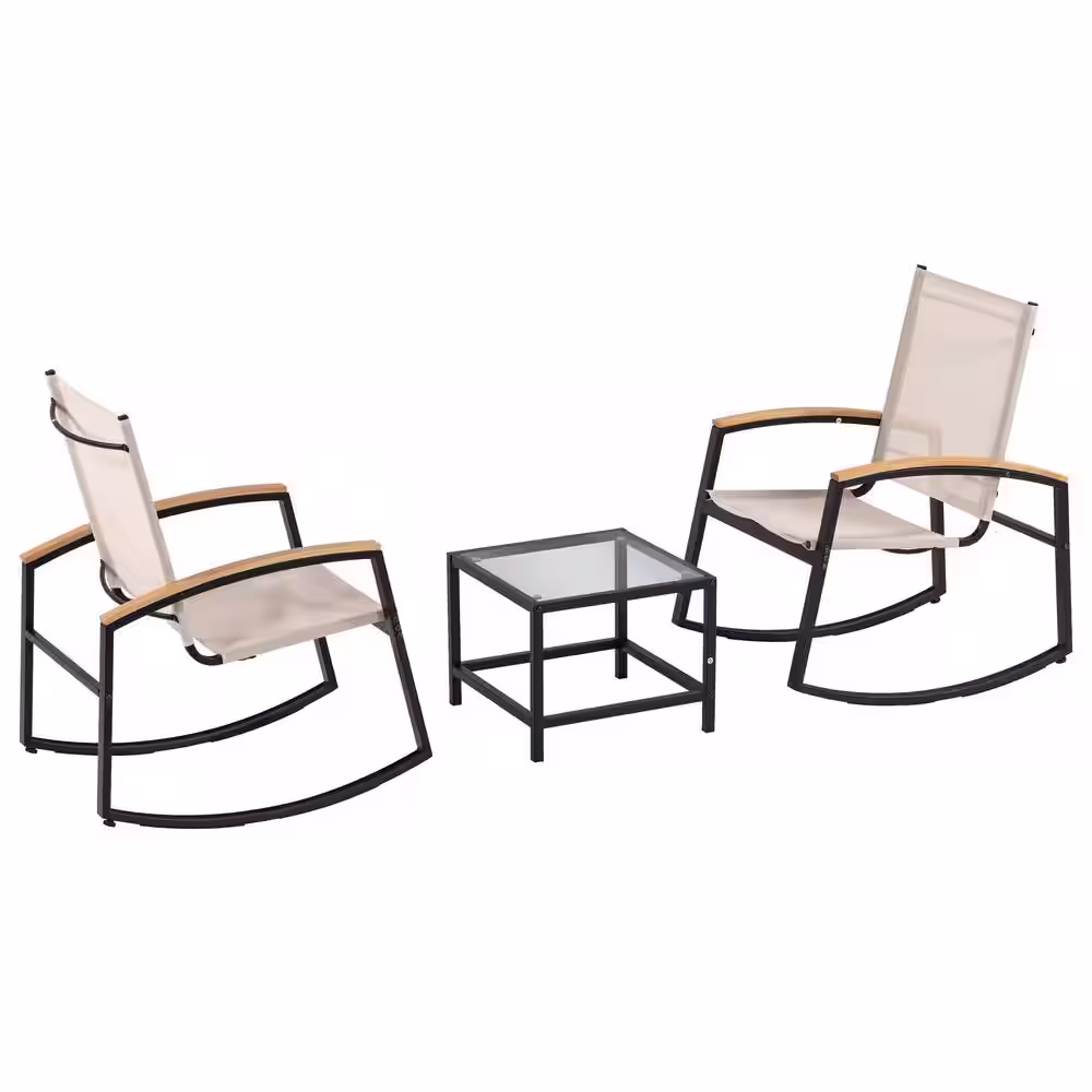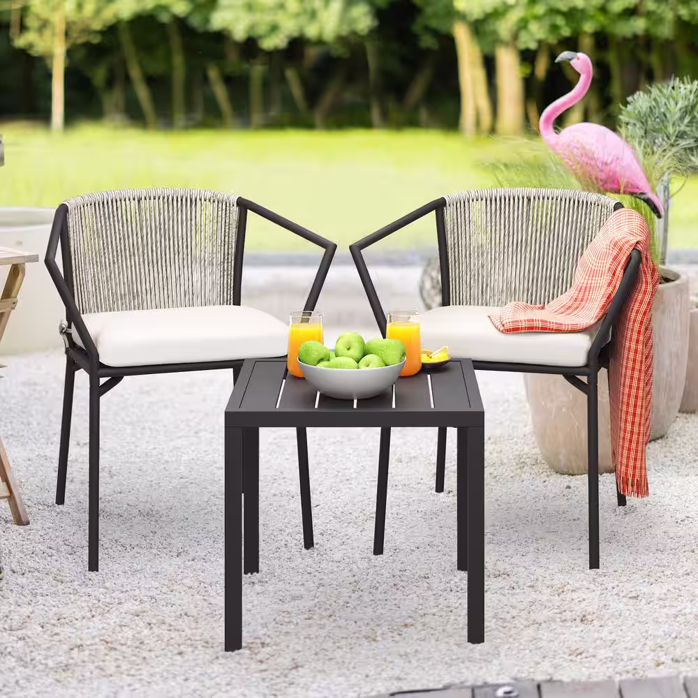 maocao hoom Black 3-Piece Metal Outdoor Bistro Set with Breathable Textilene Mesh Back