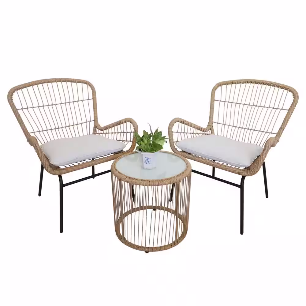 None 3-Piece PE Wicker Outdoor Bistro Set All-Weather Patio Furniture Set with Table and Beige Cushions for Backyard