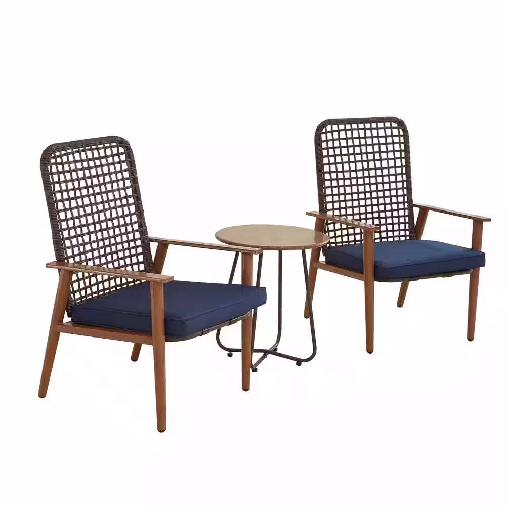 TOP HOME SPACE 3-Piece Wicker Outdoor Bistro Set with Blue Cushion