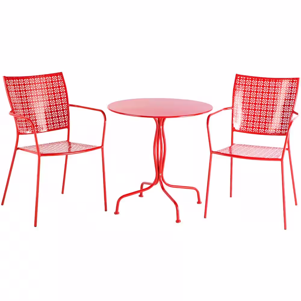Alfresco Martini Cherry Pie (3-Piece) Metal Outdoor Bistro Set with Round 28 in. Bistro Table and 2 Stackable Bistro Chairs