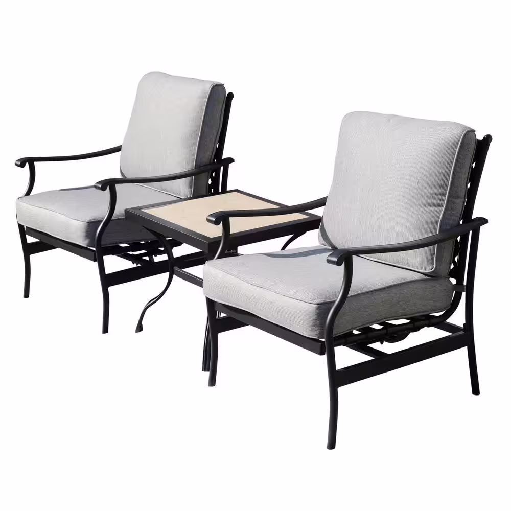 TOP HOME SPACE 3-Piece Metal Rocking Square Outdoor Bistro Set with Grey Cushion