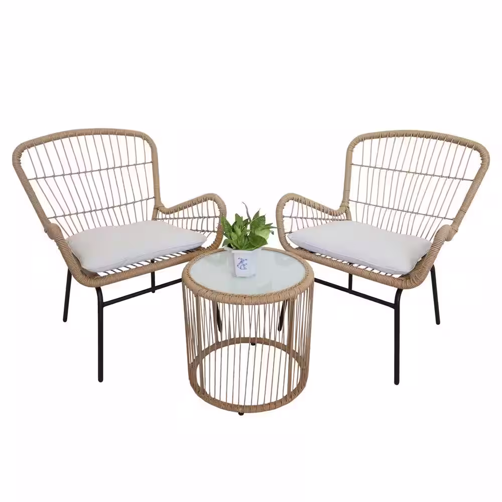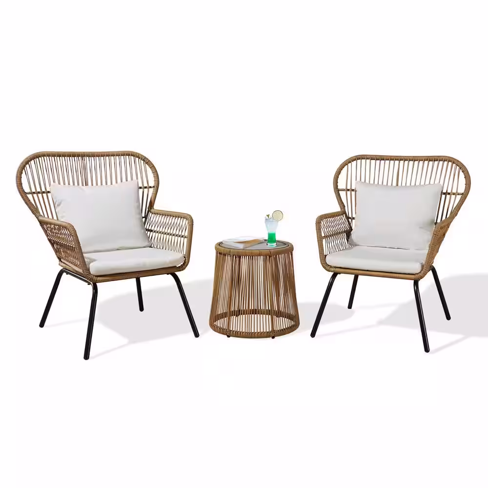 None Serga 3-Piece Wicker Patio Conversation Set Outdoor Bistro Set with Beige Cushion