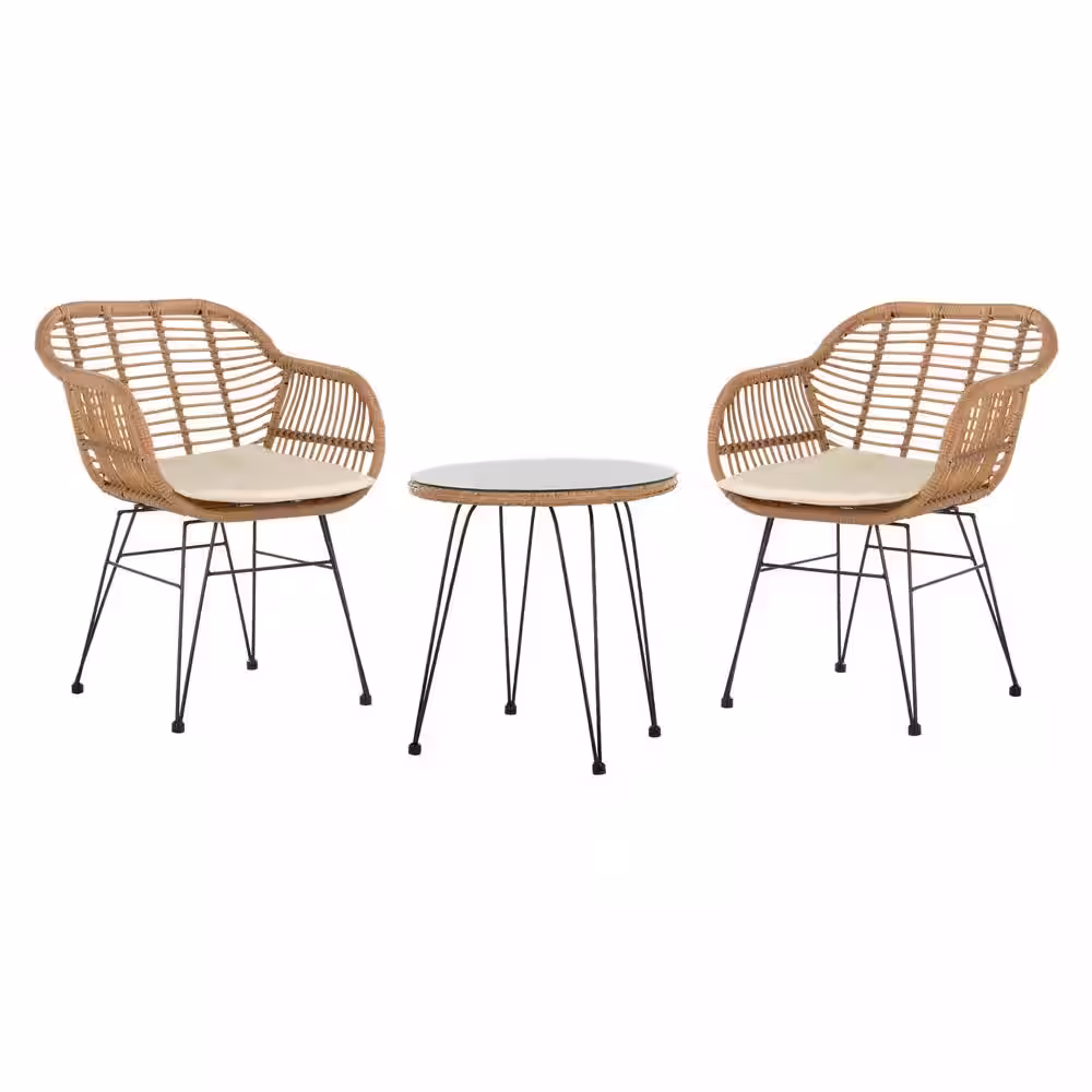 SAFAVIEH Alton Light Brown 3-Piece Wicker Outdoor Bistro Set with White Cushions