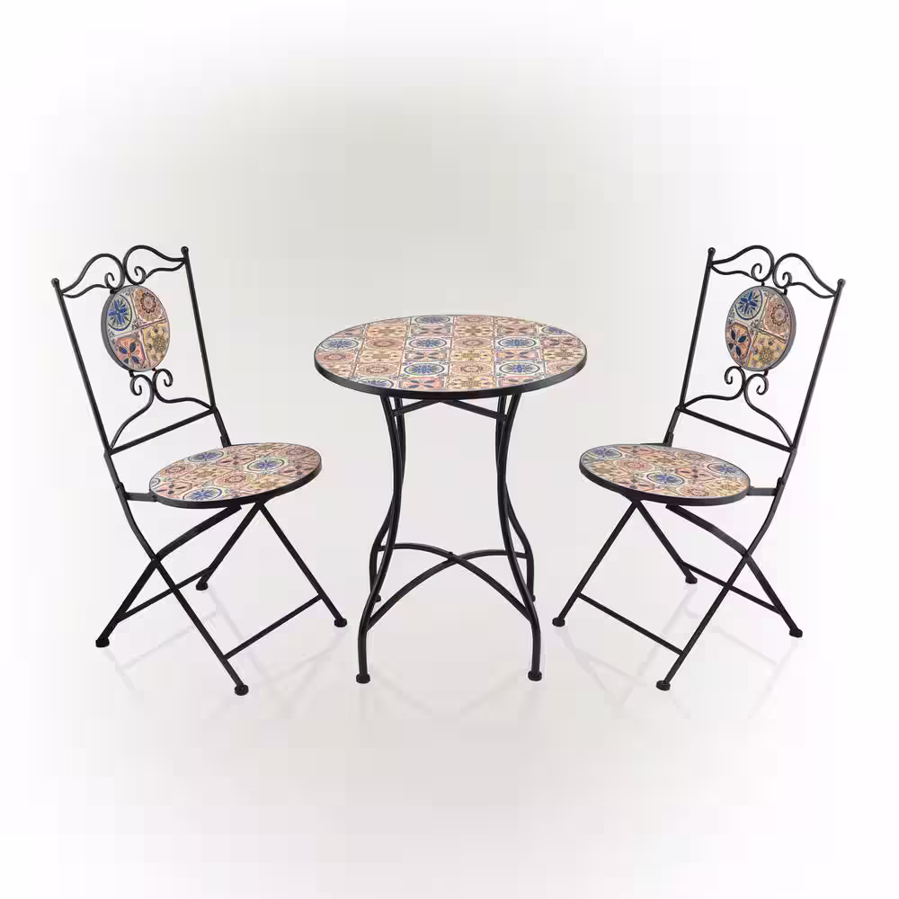 None Indoor/Outdoor Mediterranean Tile Design Set Table and Chairs Patio Seating