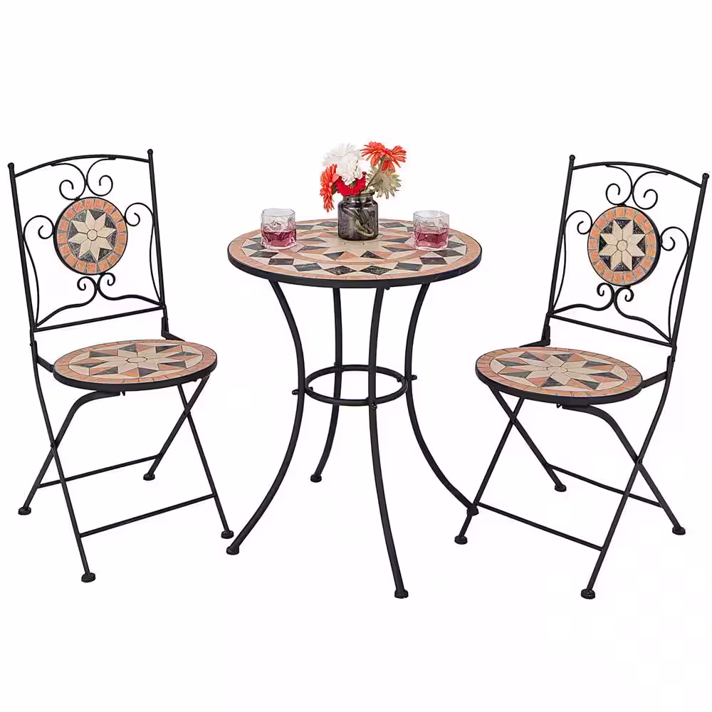 Costway 3-Pieces Ceramic Metal Patio Bistro Set Outdoor Patio Conversation Furniture Folding Dining Garden