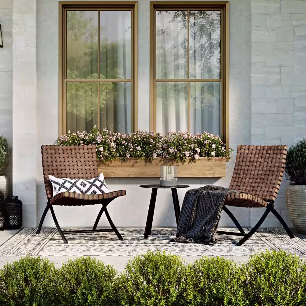 None 3-Piece Wicker Outdoor Bistro Set Outdoor Porch Bistro Sets Foldable Wicker Lounger Chairs and Coffee Table in Brown