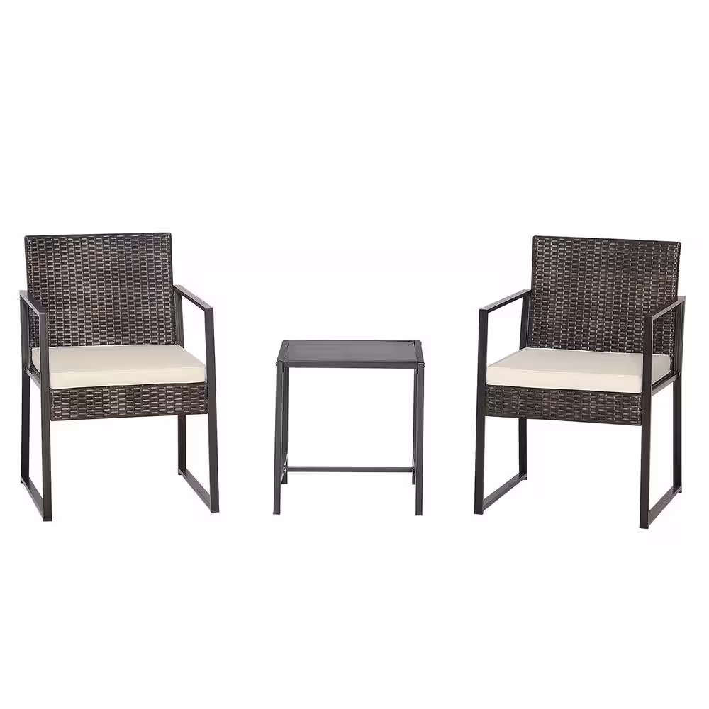 None 3-Piece Wicker Outdoor Bistro Patio Rattan Hand-Woven PE Bistro Set Furniture Set with Table and Off White Cushion