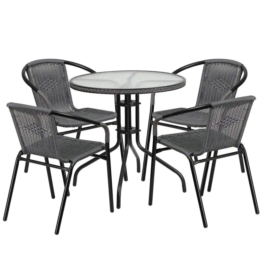 Carnegy Avenue Black 5-Piece Metal Frame with Round Glass table Top Outdoor Bistro Set