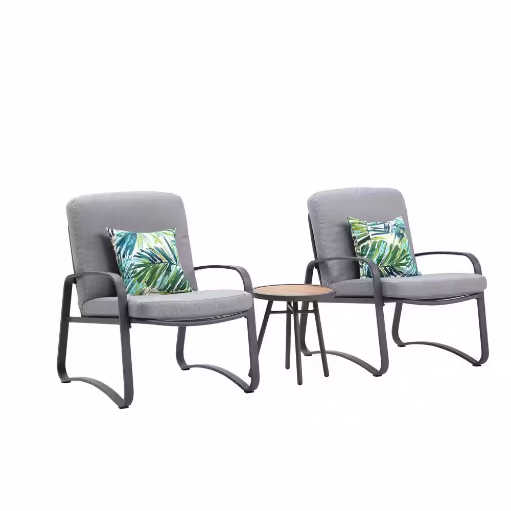 None Gray 3-Piece Metal Outdoor Bistro Set with Washed Gray Cushion