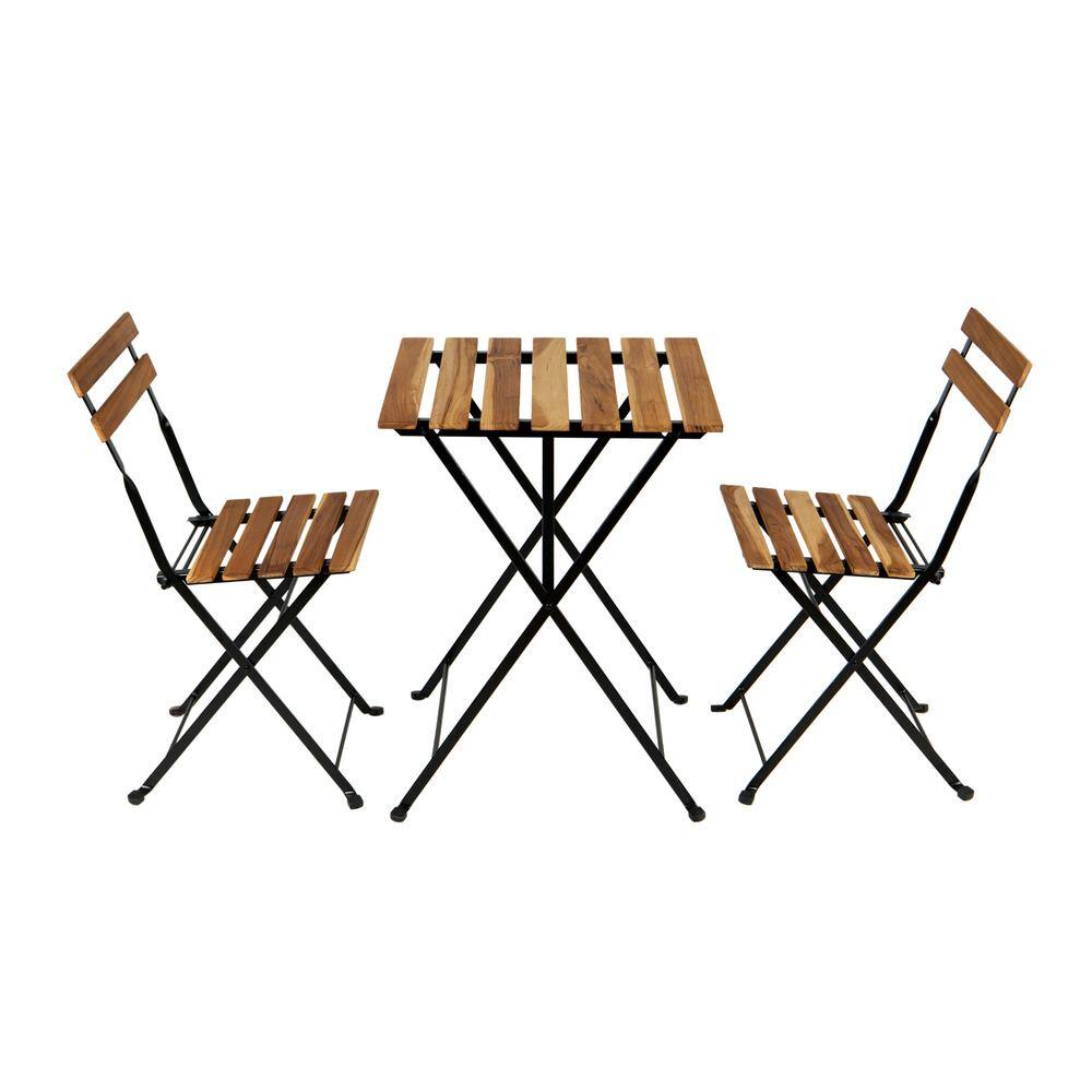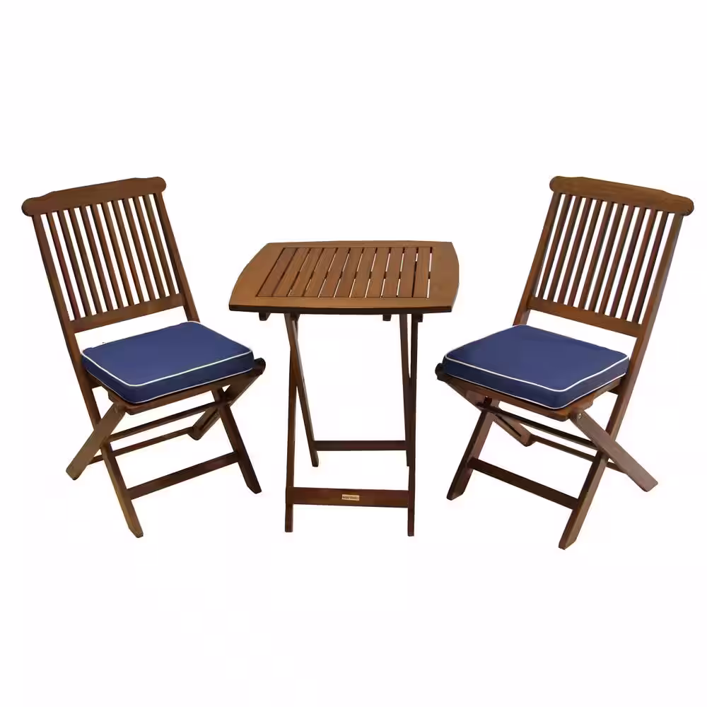 Tatayosi 3-Piece Teak Wood Outdoor Bistro Set Folding Table and Chair Set with Blue Cushion