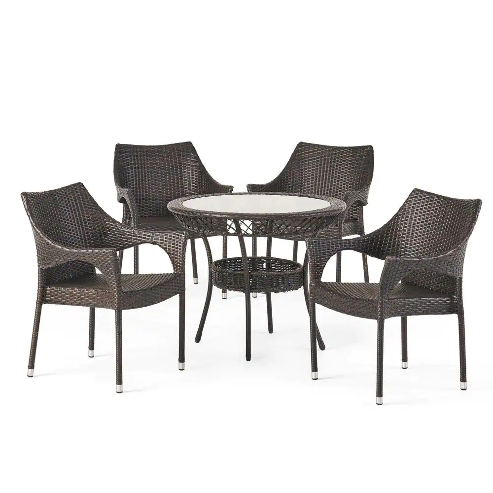 Noble House Mirage Multi-Brown 5-Piece Faux Rattan Outdoor Bistro Set