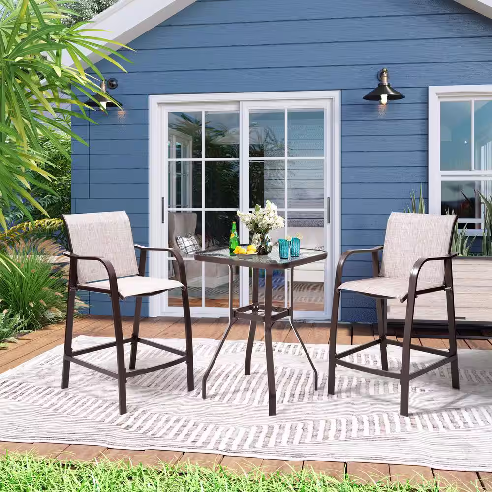 Pellebant 3-Piece Aluminum Outdoor Patio Bar Set in Beige with Tempered Glass Table Top and Umbrella Hole