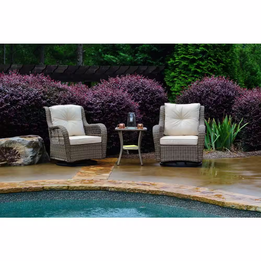 Tortuga Outdoor Rio Vista 3-Piece Wicker Outdoor Bistro Set with Beige Cushions (Glider Outdoor Chair and Patio Side Table Bundle)
