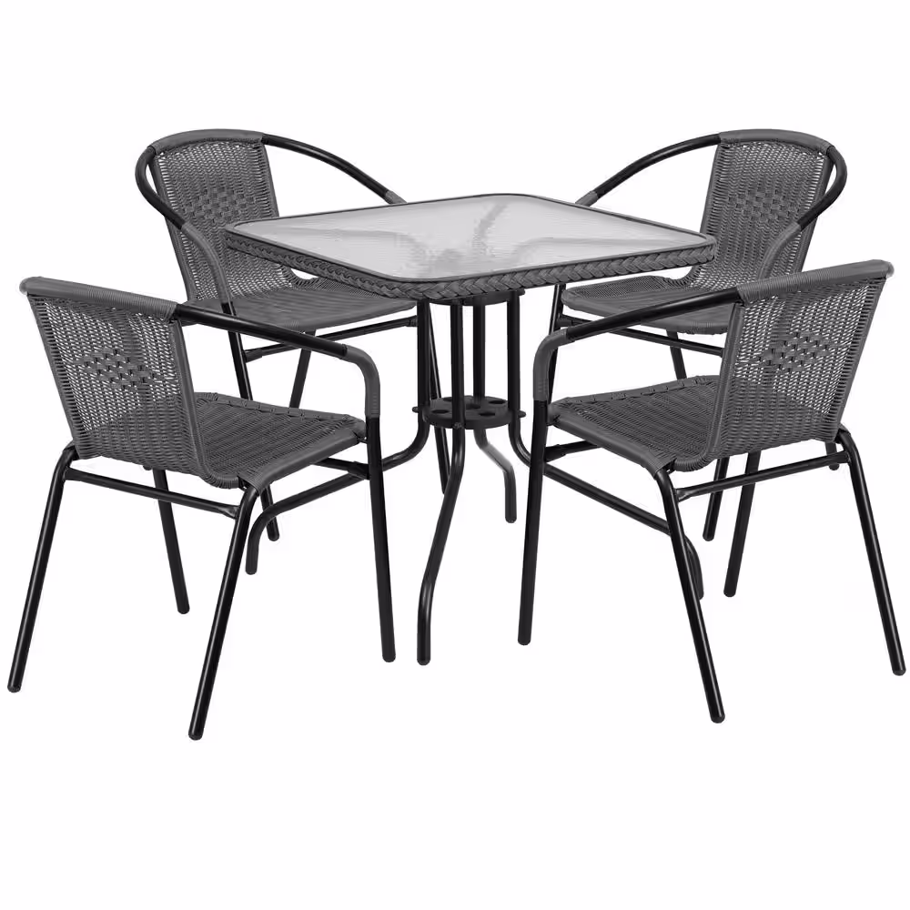 Carnegy Avenue Black 5-Piece Metal Frame with Square Glass table Top Outdoor Bistro Set