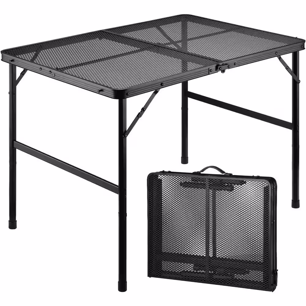 None Portable Outdoor Table 3 ft. Folding w/ Mesh Non-Slip Feet Height Adjustable Lightweight Portable Aluminum Outdoor Table