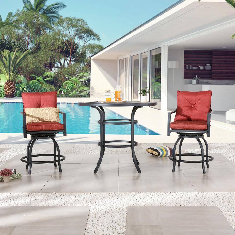 Patio Festival 3-Piece Metal Bar Height Outdoor Bistro Set with Red Cushions