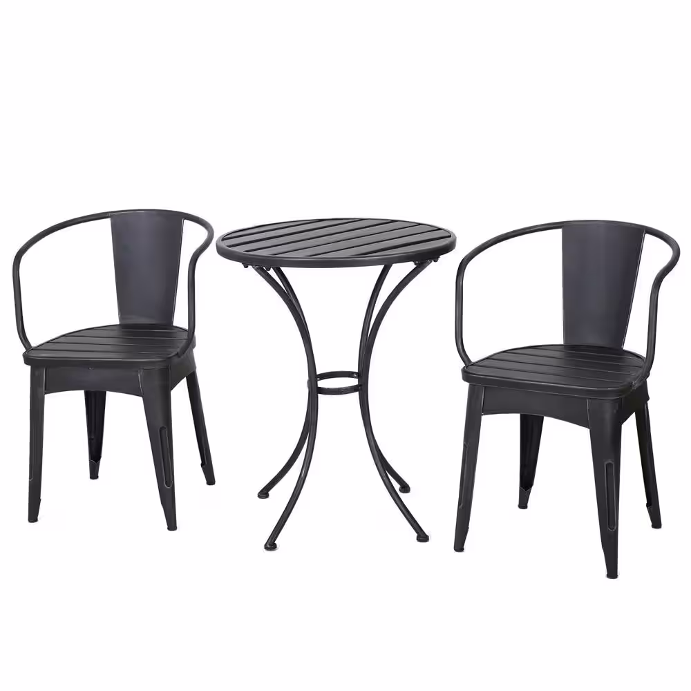 Carnegy Avenue 3-Piece Metal Round Outdoor Bistro Set in Black