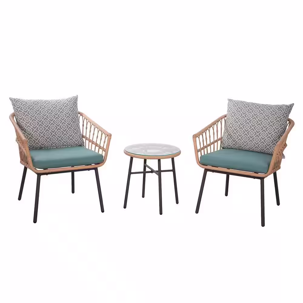 Soleil jardin SJ 3-Piece Metal Outdoor Bistro Set with Turquoise Cushions
