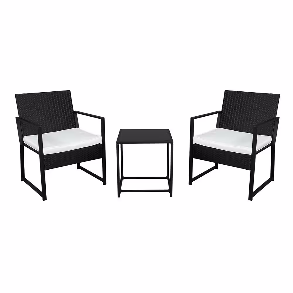 None Black 3-Piece Wicker Outdoor Bistro Set Armchairs with Washed White Cushion