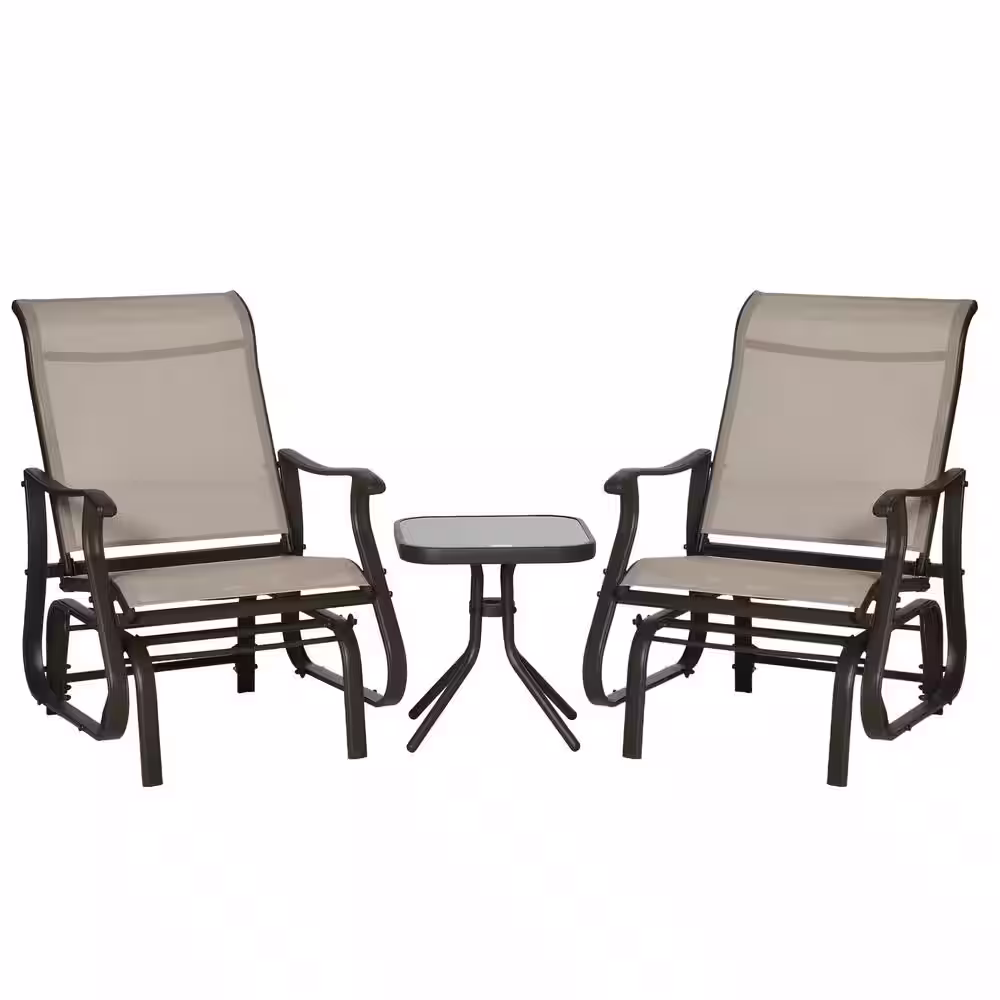 Outsunny Grey 3-Piece Metal Gliding Chair and Tea Table Set Lawn Chair with Tempered Glass