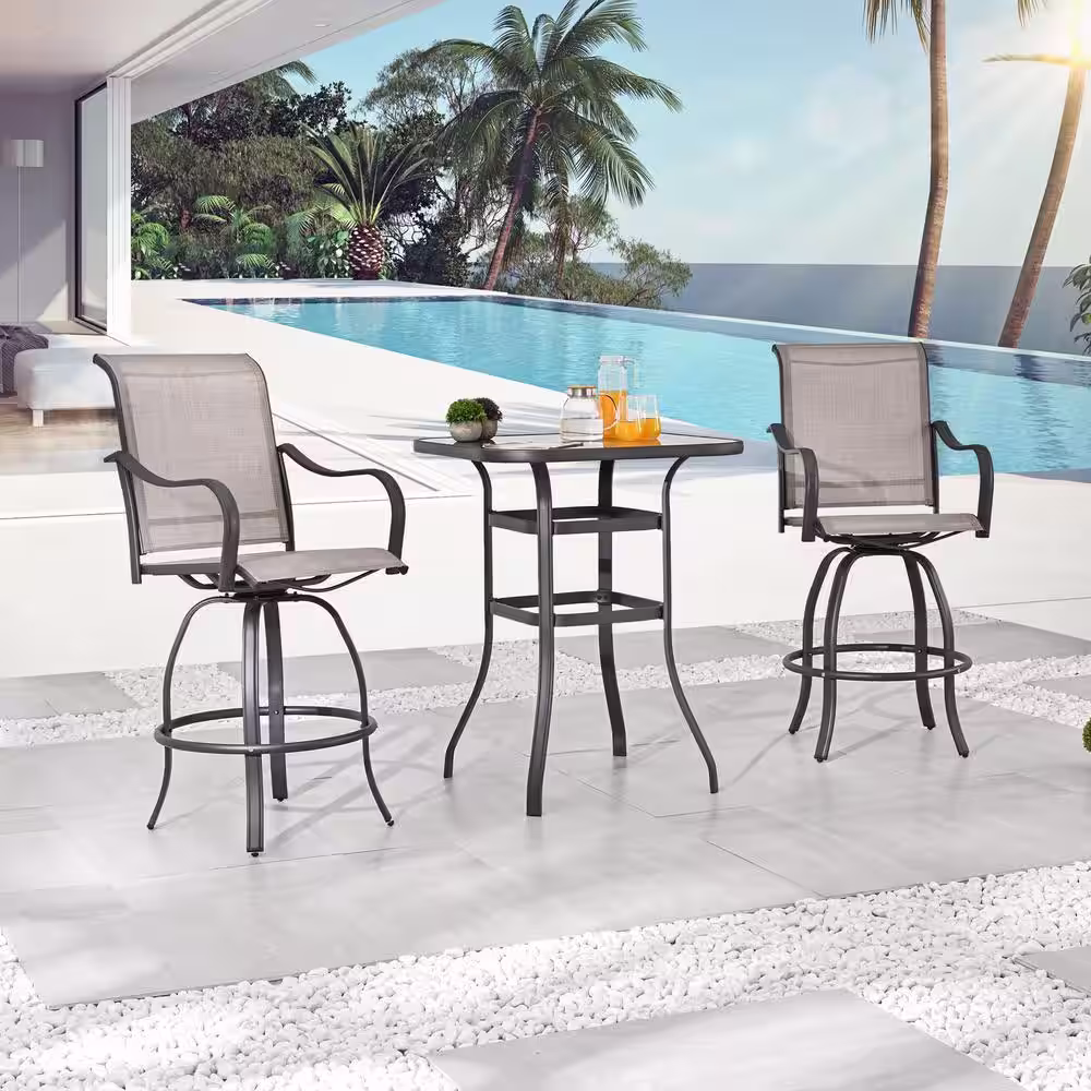 Patio Festival Gray 3-Piece Outdoor Sling Square Bar Height Outdoor Bistro Set